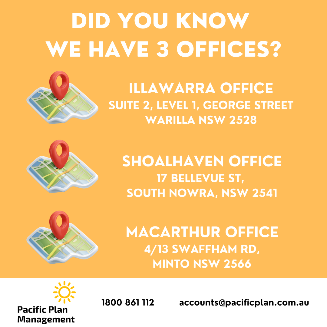 At Pacific Plan Management, we love meeting our participants and their families — and to make sure we can give you the time, care, and attention you deserve, we kindly ask that all visits be by appointment only. ✨ Our locations: 📍 Illawarra 📍 Shoalhaven 📍Macarthur Please Note: Some of our offices are up a few flights of stairs, which may make access difficult for some visitors. We’re committed to accessibility, and we’re always happy to arrange a meeting at a nearby café or another location that suits you best. Just get in touch — we’ll make it work!